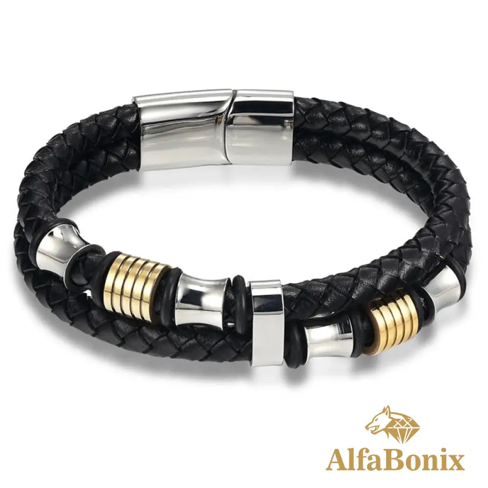 Esta pulsera artesanal transforma cualquier look básico, dejándote más estiloso y con presencia. Está hecha de cuero 100% legítimo, con detalles en acero inoxidable de alta calidad y cierre magnético. Un accesorio perfecto para que te destaques de los demás con lujo y estilo sin gastar mucho.